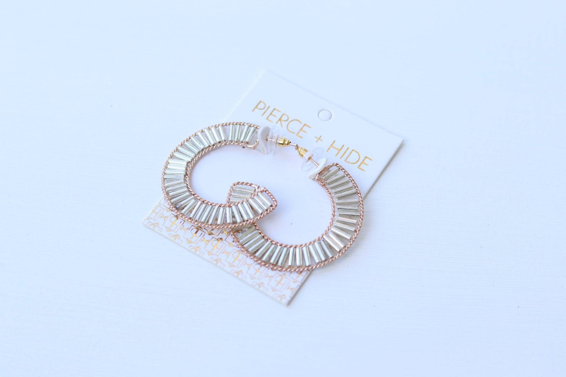 Custom Platinum Luxe Tube Beaded Hoops| Hoop Earrings